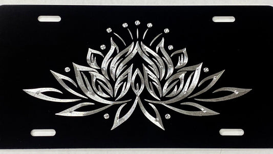Lotus Flower Diamond Etched REFLECTIVE Engraved License Plate Metal Car Tag Gift