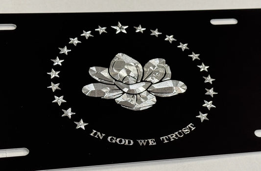 Engraved In God We Trust US USA Flag Diamond Etched Black Car Tag License Plate