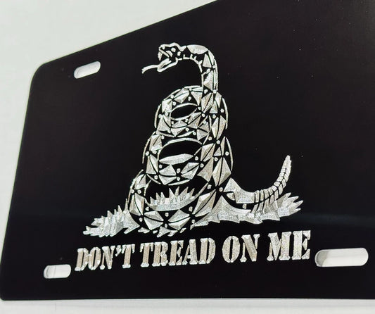 Engraved Gadsden Flag DON'T TREAD ON ME Car Tag Diamond Etched License Plate