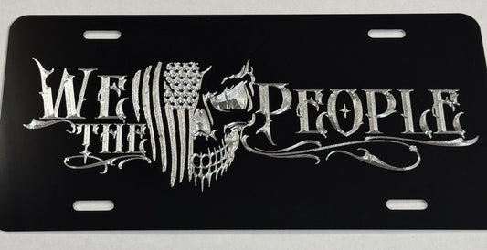 WE THE PEOPLE US Flag Skull Patriotic Car Tag Diamond Etched License Plate