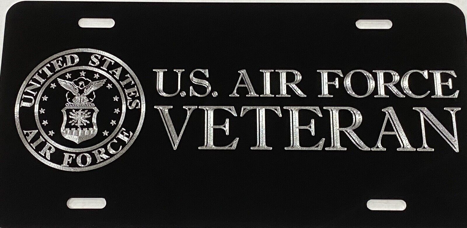 Bold Engraved US Air Force Veteran Car Tag Diamond Etched Metal License Plate
