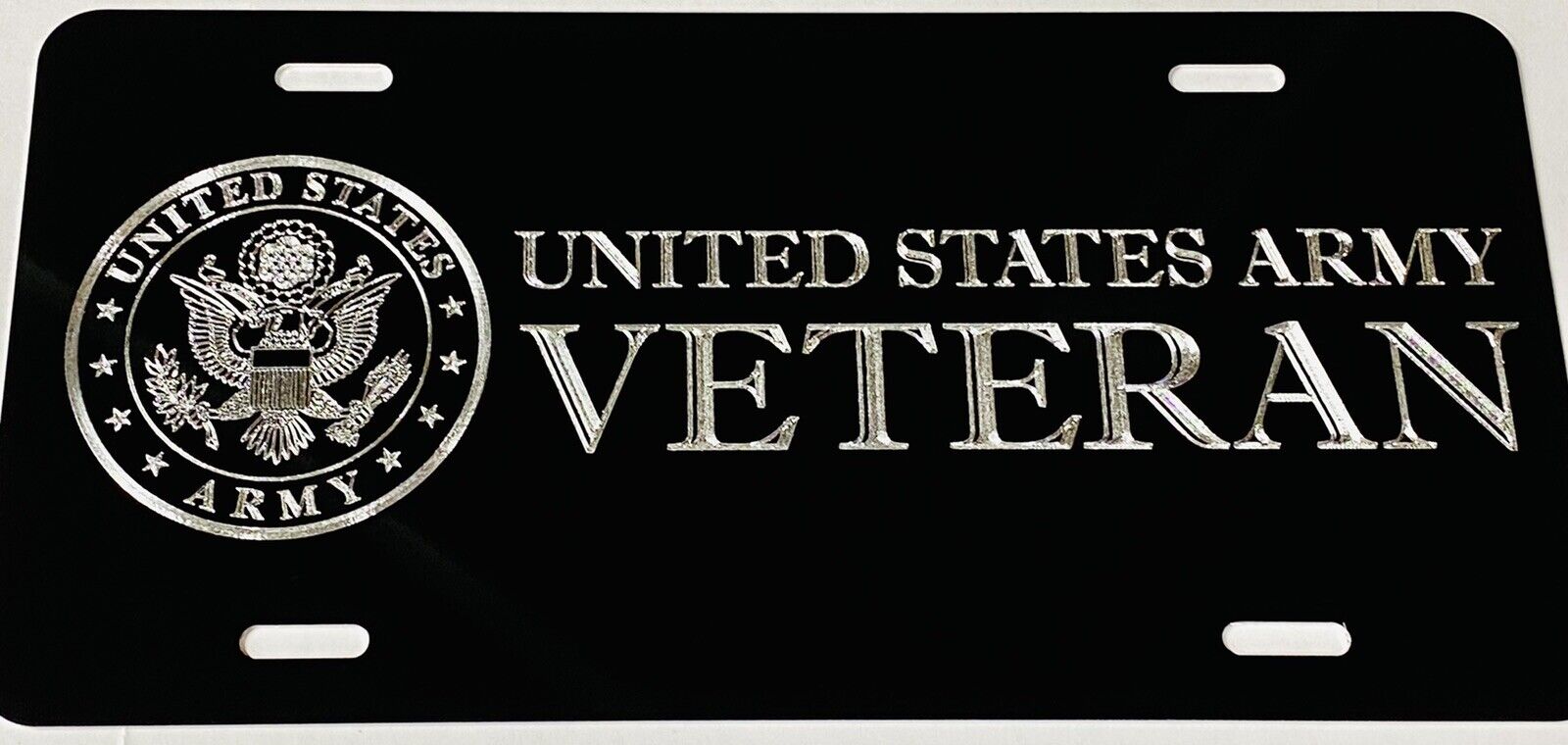Bold Engraved US Army Vet Veteran Car Tag Diamond Etched Metal License Plate
