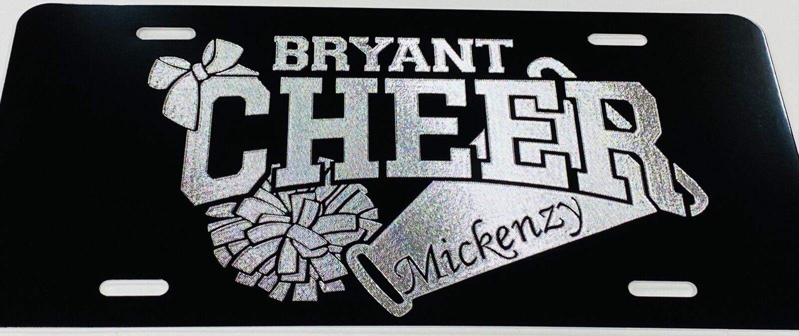 Cheer Cheerleading Pom Pom Car Tag Engraved Black Silver Etched License Plate