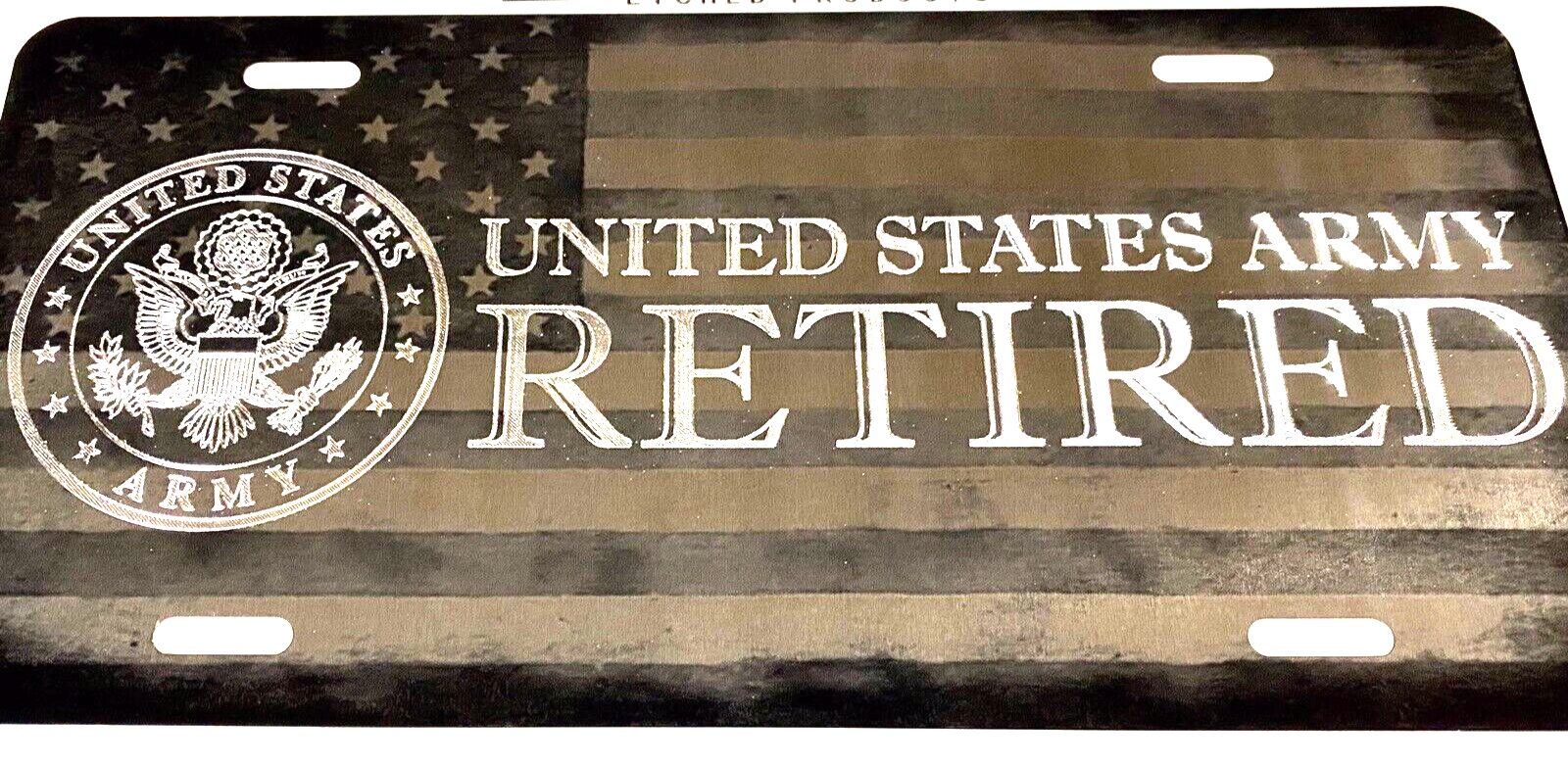 Combo Laser & Diamond Engraved US Army Retired Tag Vanity License Plate Gift