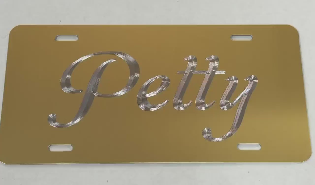Custom Gold Diamond Etched on Aluminum License Plate, Car Tag