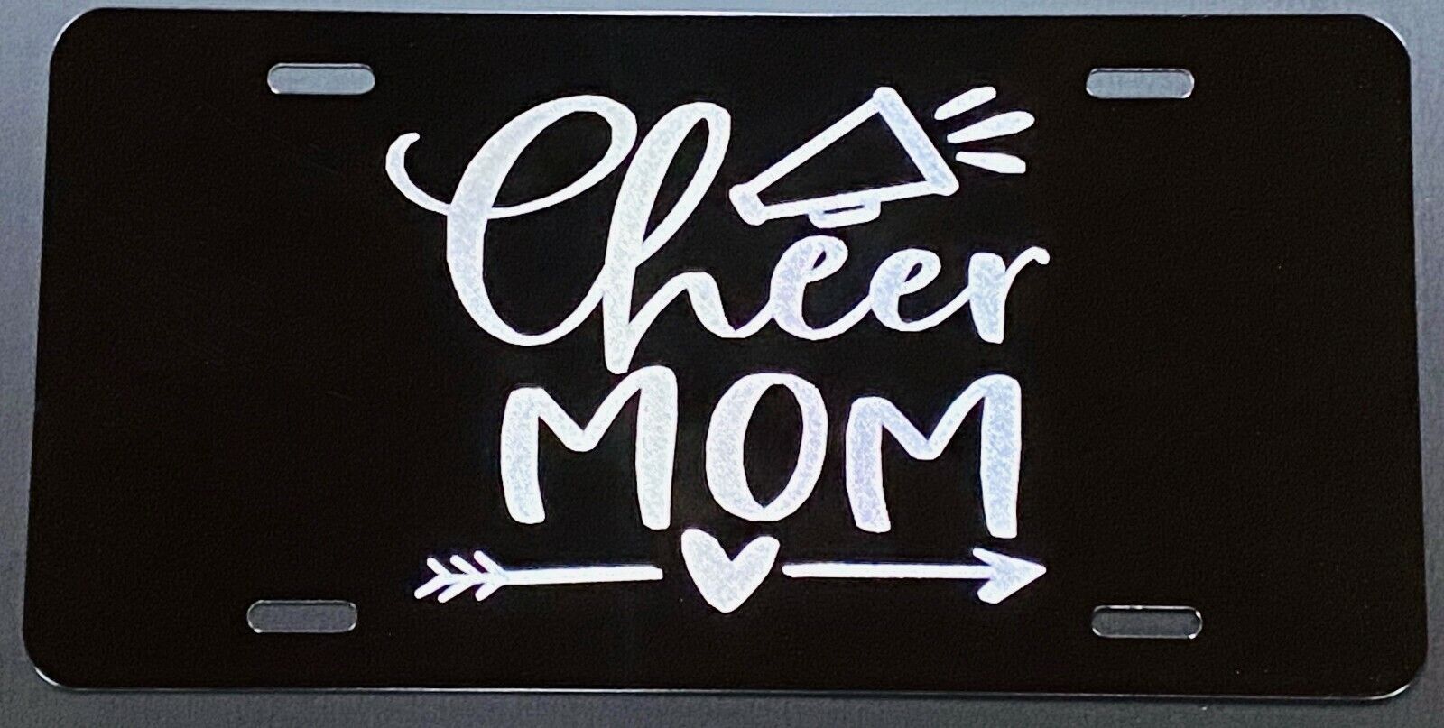 DEEP Engraved Cheer Mom Car Tag Diamond Etched Black Aluminum License Plate Gift