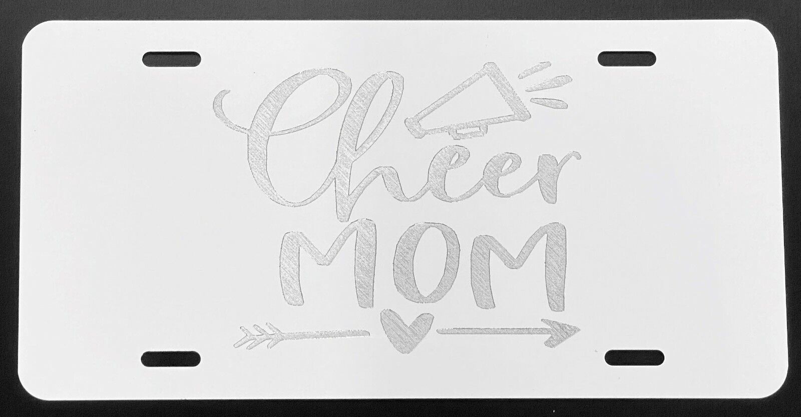 DEEP Engraved Cheer Mom Car Tag Diamond Etched White Aluminum License Plate Gift