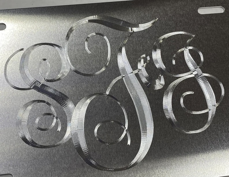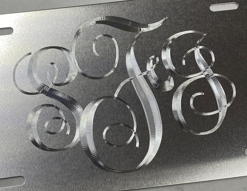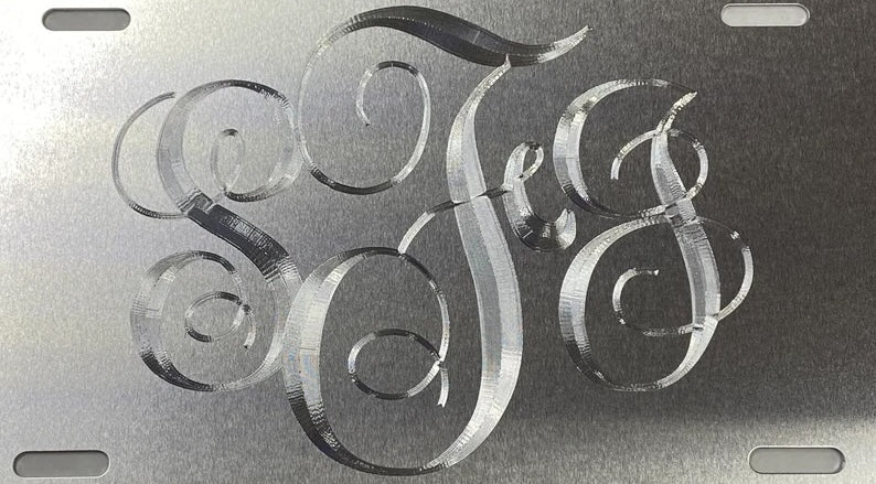 Diamond Etched Silver on Silver Custom Personalized Monogram License Plate