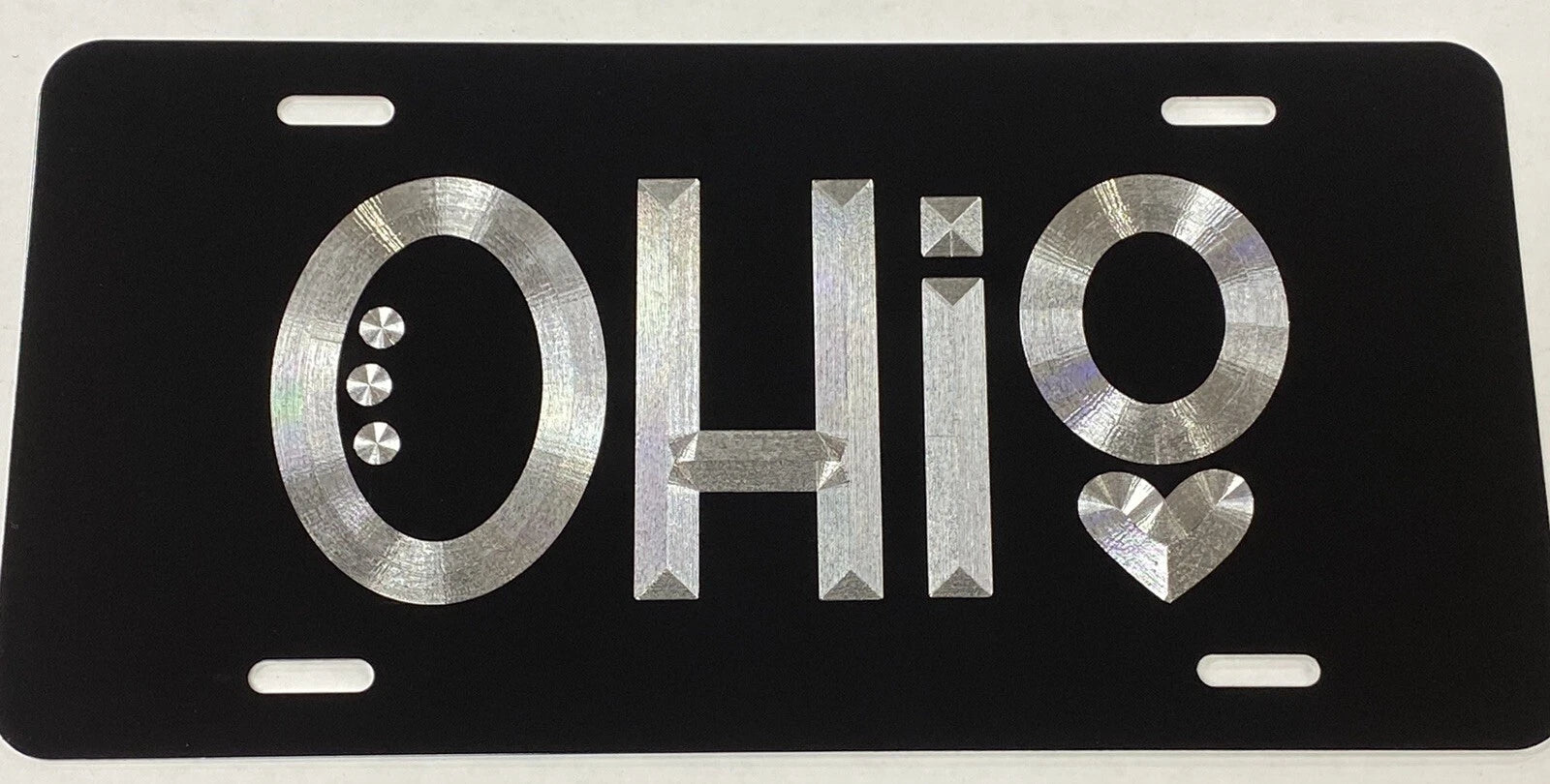 Diamond Etched State of Ohio OH Car Tag Black Metal Vanity License Plate Gift