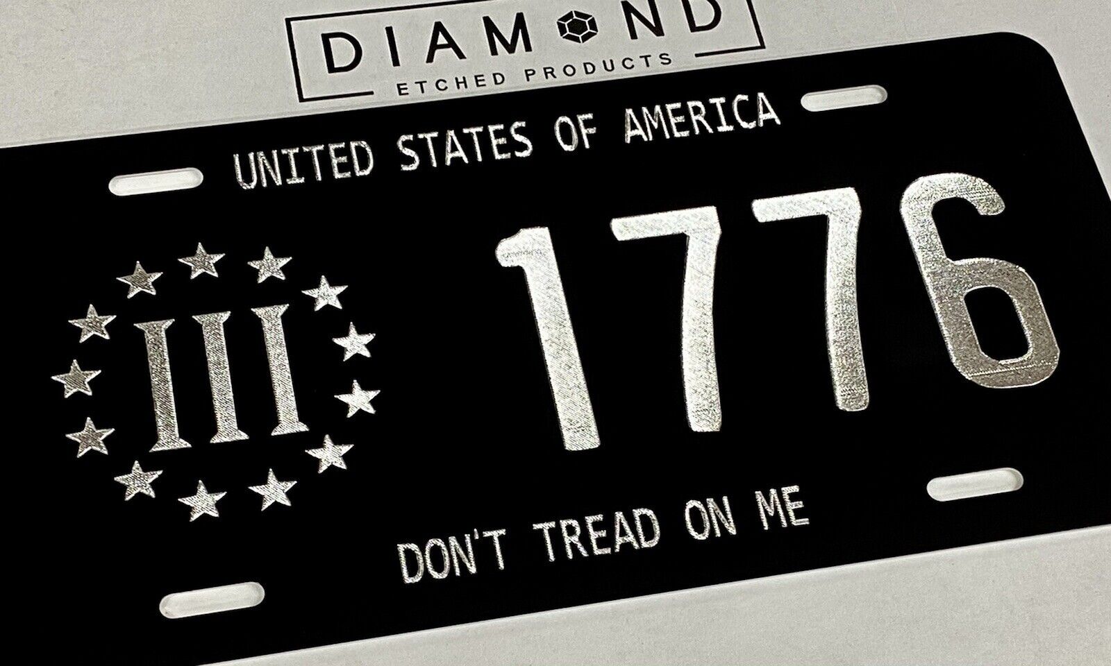 ENGRAVED Don't Tread On Me 1776 Patriotic Car Tag Diamond Etched License Plate