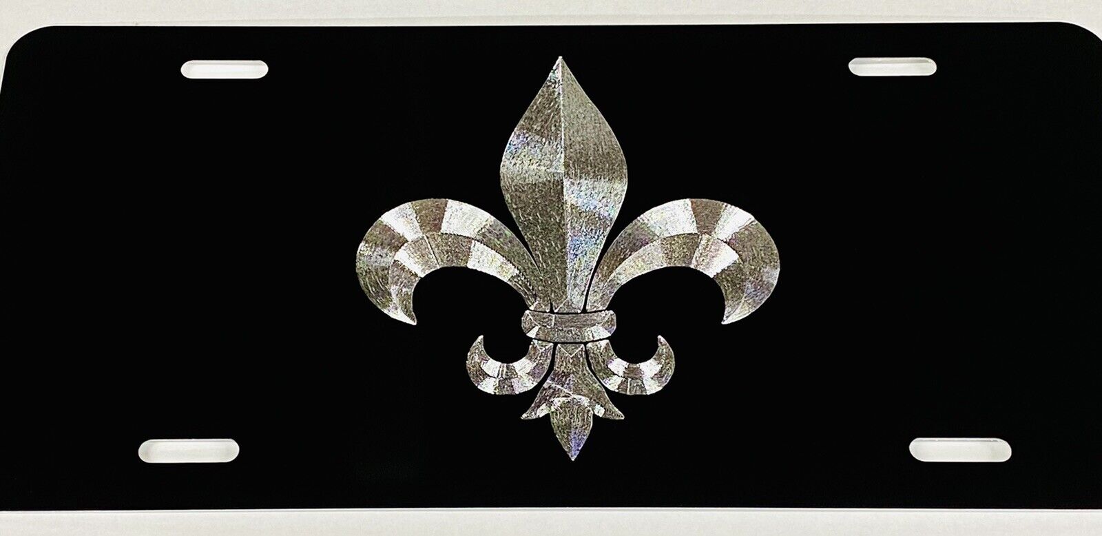 Engraved Fleur De Lis Symbol Car Tag Diamond Etched Vanity License Plate Gift
