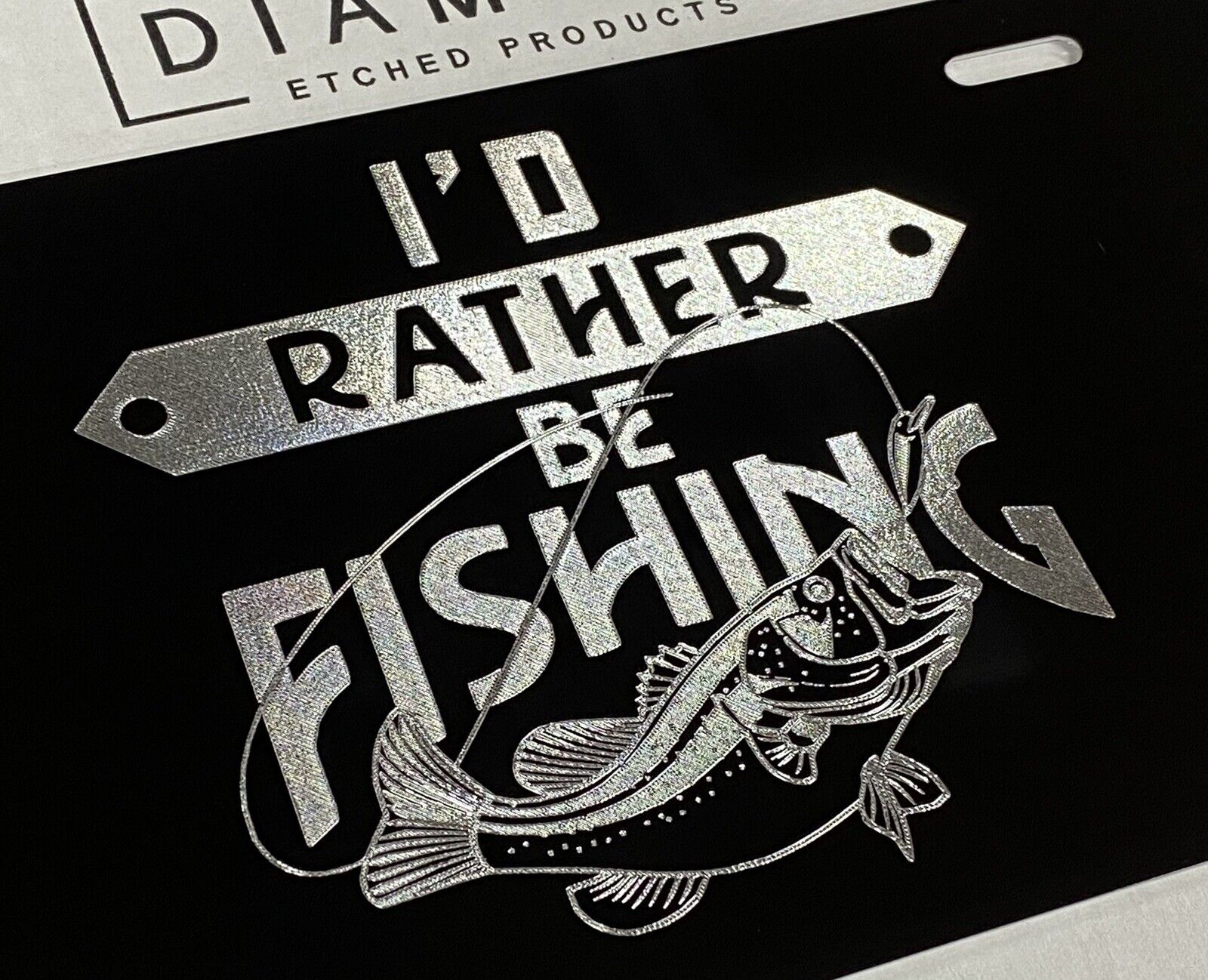 Engraved I'd rather be Fishing Car Tag Diamond Etched Aluminum License Plate