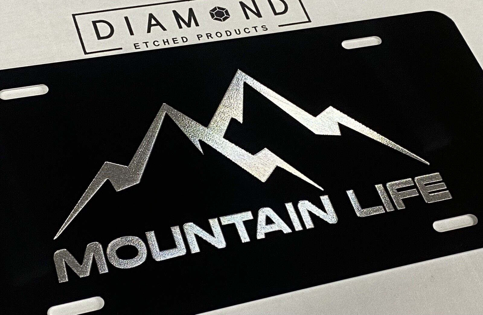 Engraved Mountain Life Car Tag Diamond Etched Black Aluminum License Plate Gift