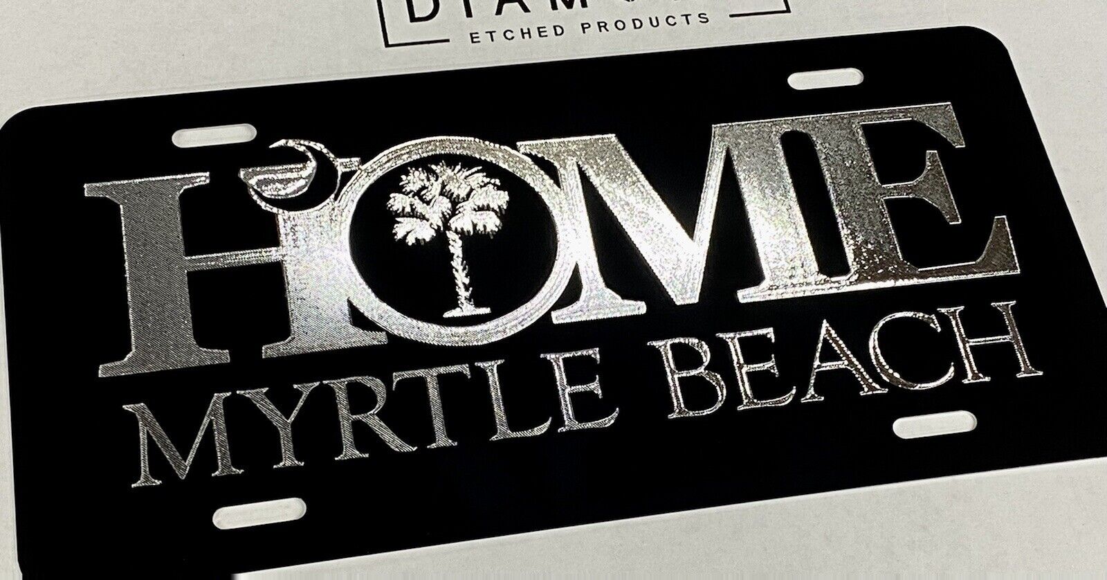 Engraved Myrtle Beach Palmetto Tree Home Diamond Etched License Plate Car Tag