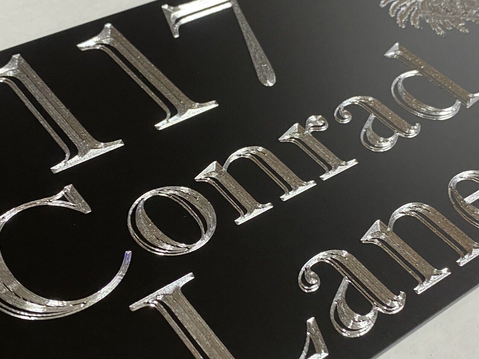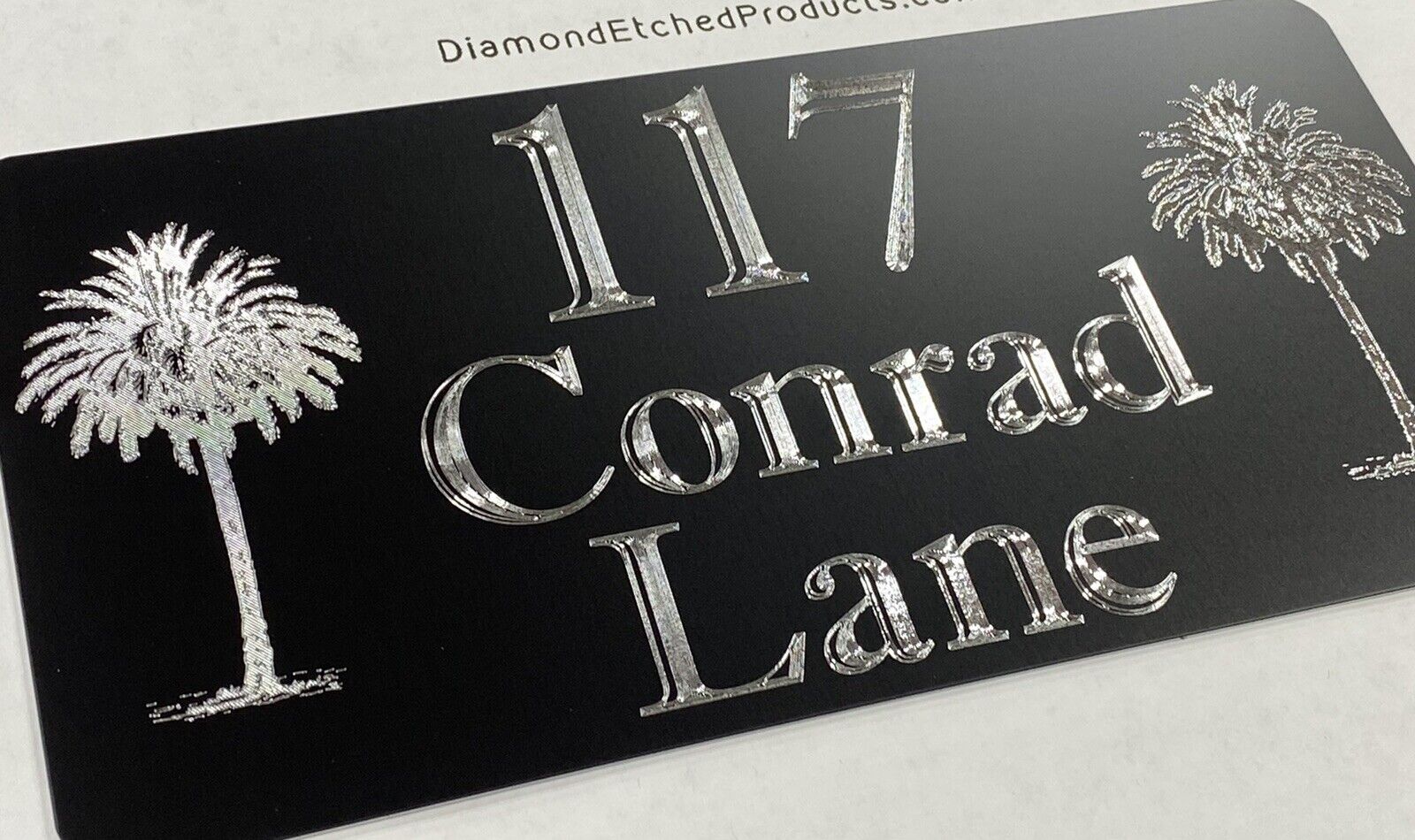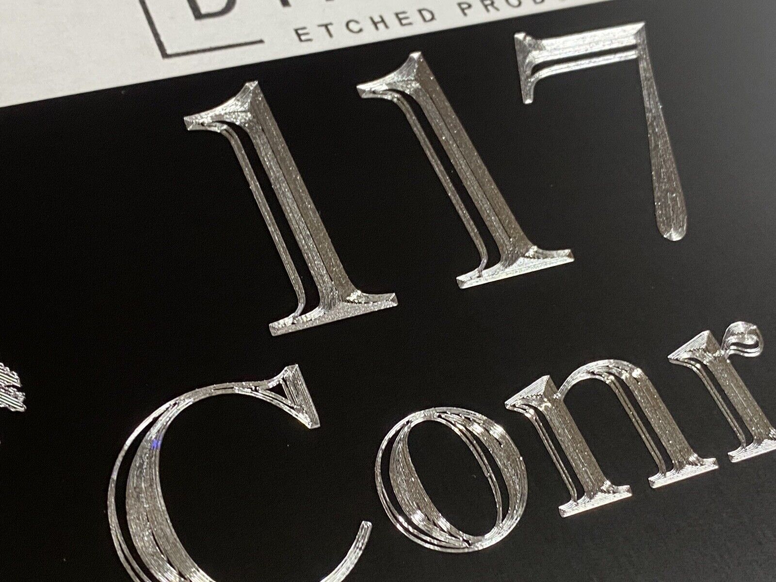 Our Diamond Etched aluminum gives a brilliant contrast to the matte black paint that cannot be fully appreciated until you see it in person. What we do for signage is what Rolls Royce does for the Automobile. Our products invoke Joy.