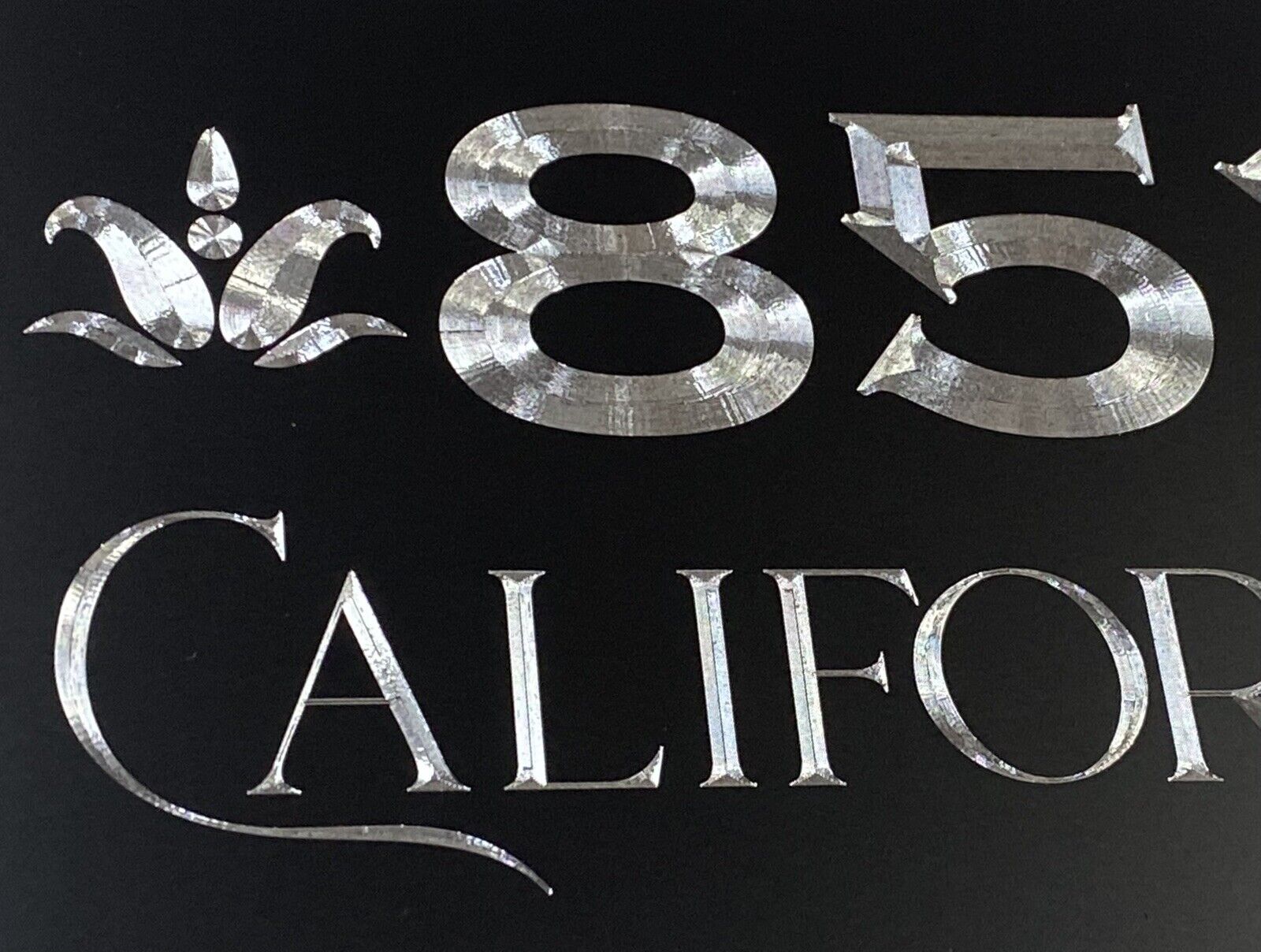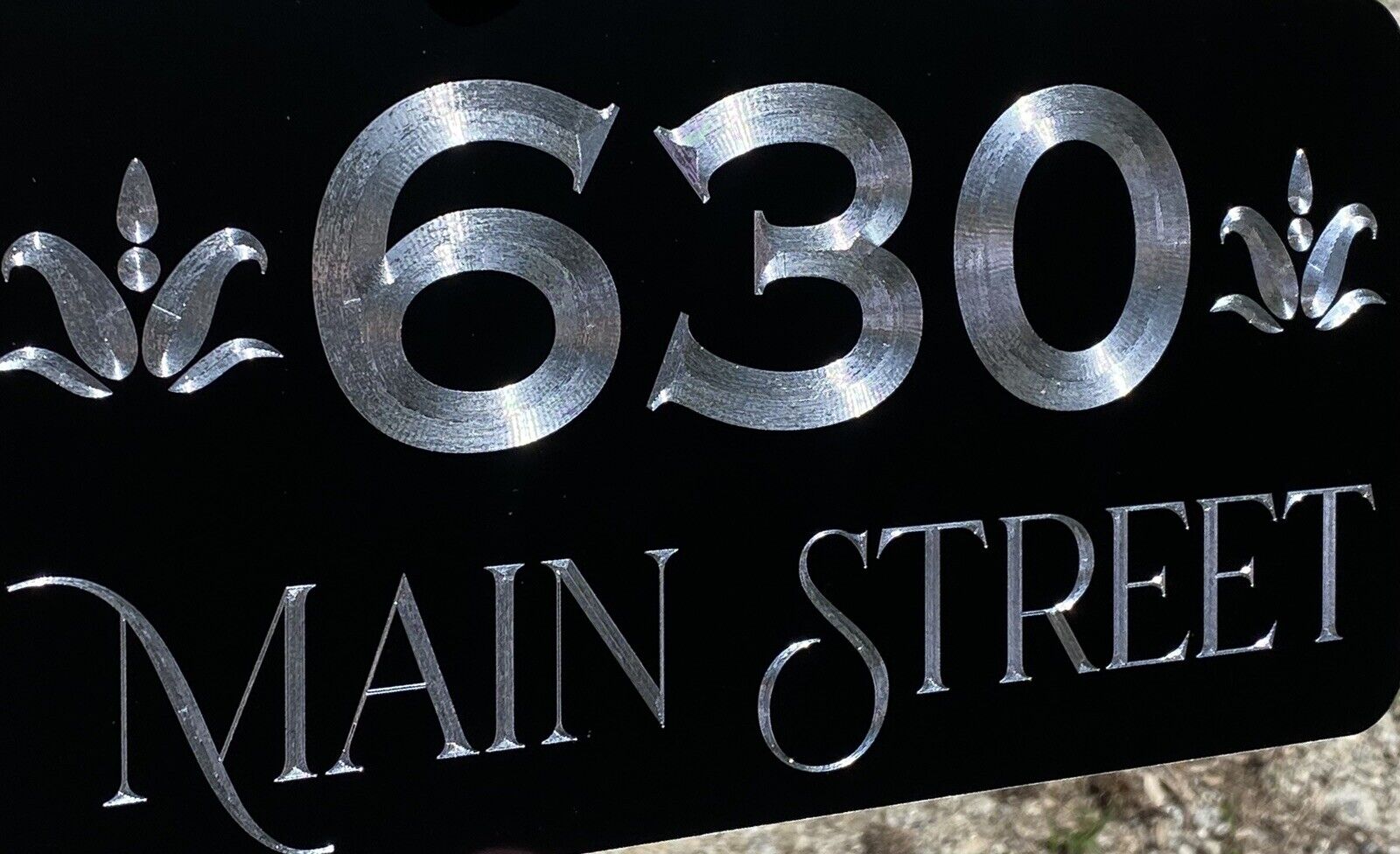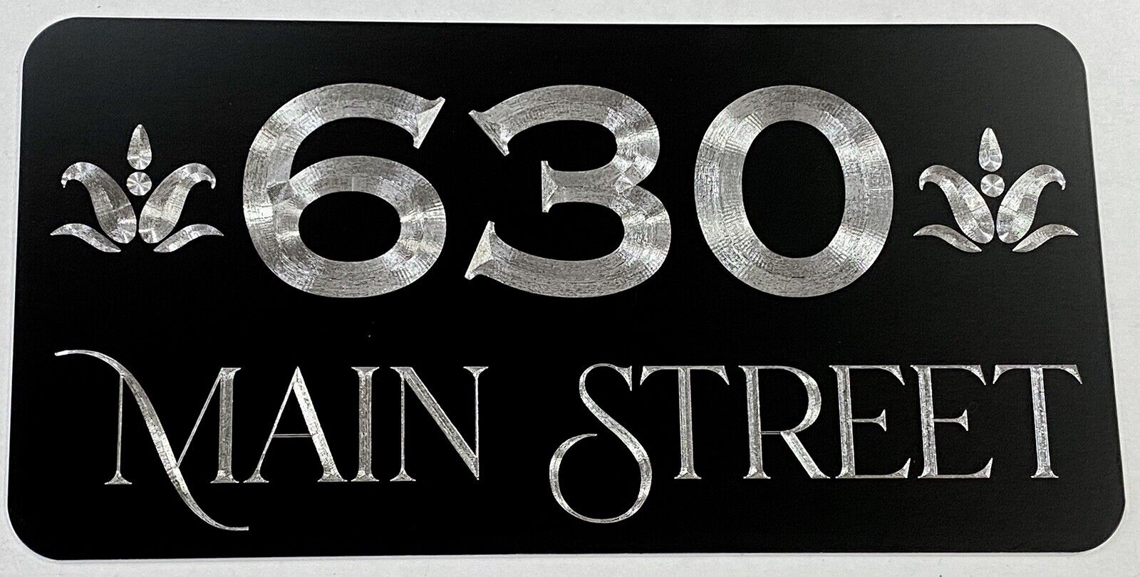 Our Diamond Etched aluminum gives a brilliant contrast to the matte black paint that cannot be fully appreciated until you see it in person. What we do for signage is what Rolls Royce does for the Automobile. Our products invoke Joy.