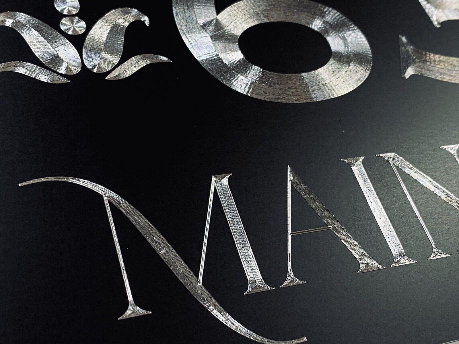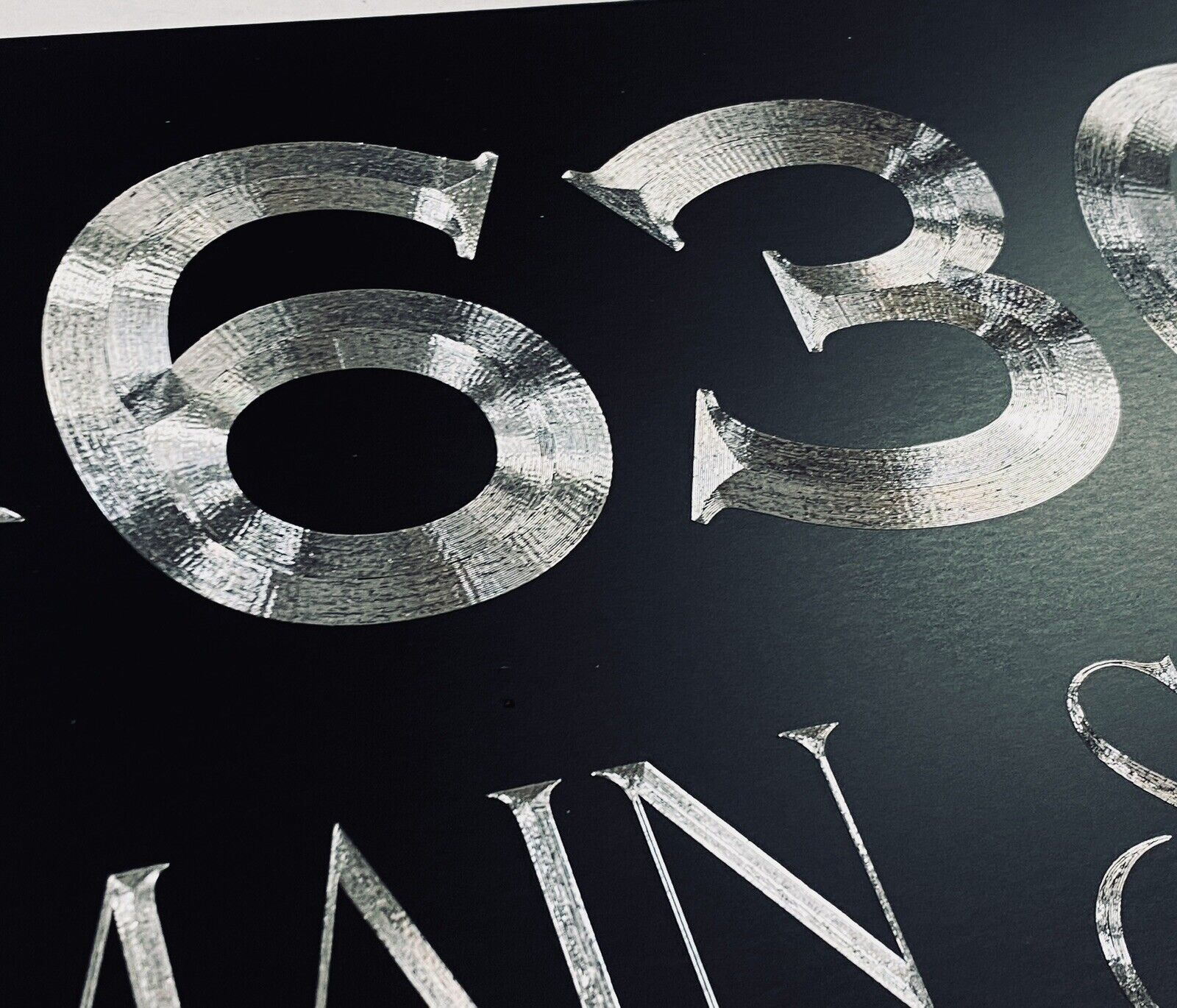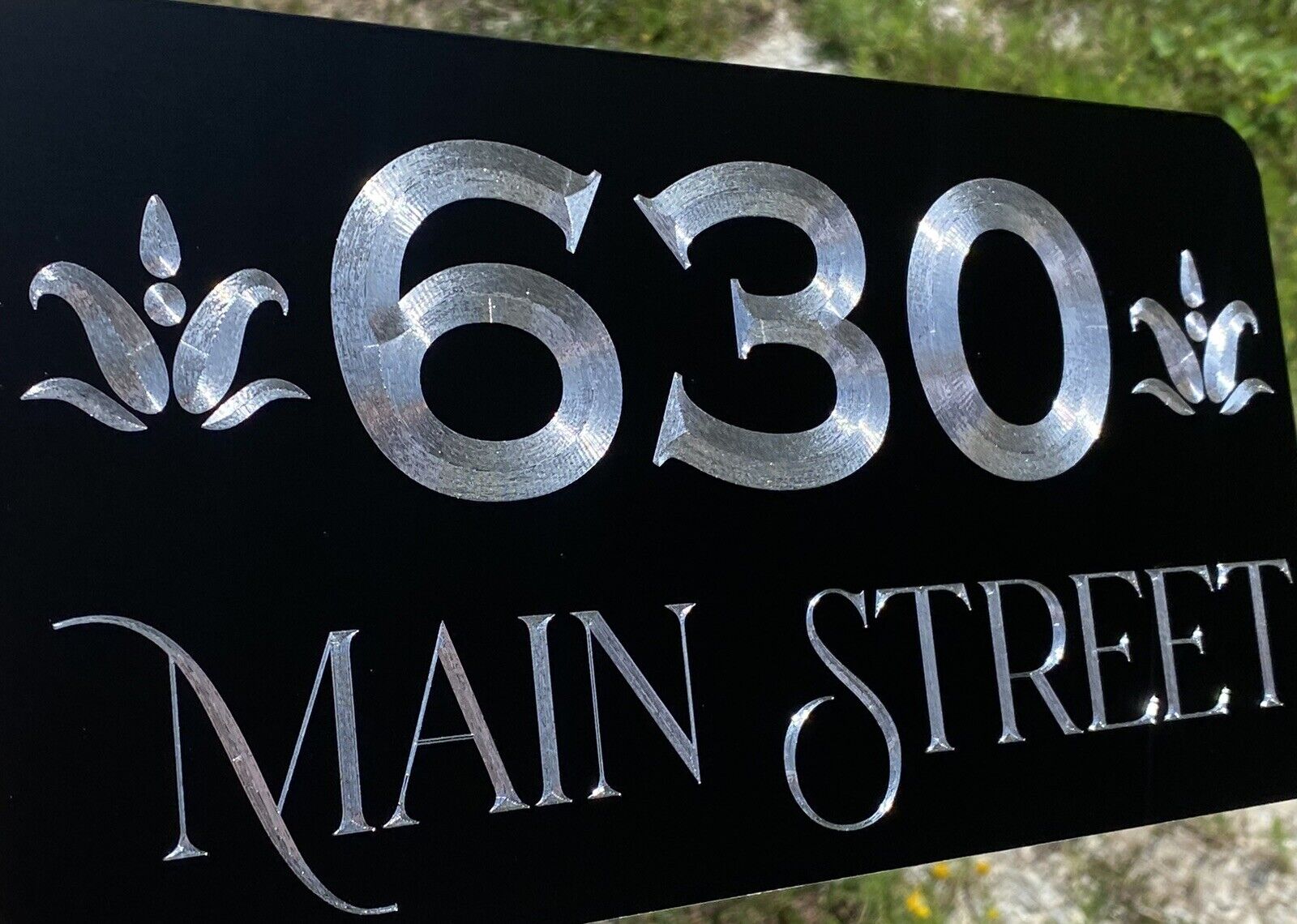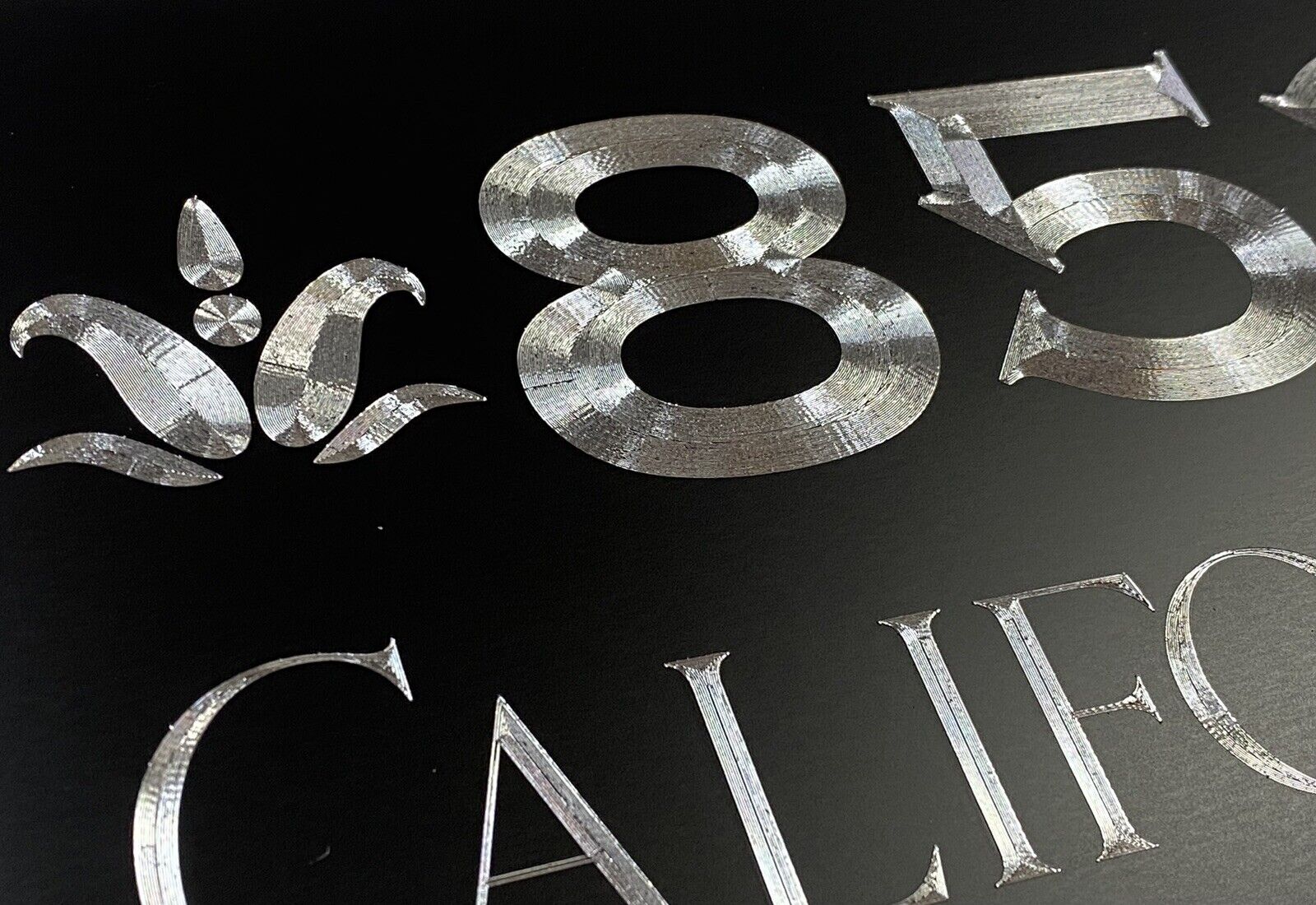 Our Diamond Etched aluminum gives a brilliant contrast to the matte black paint that cannot be fully appreciated until you see it in person. What we do for signage is what Rolls Royce does for the Automobile. Our products invoke Joy.