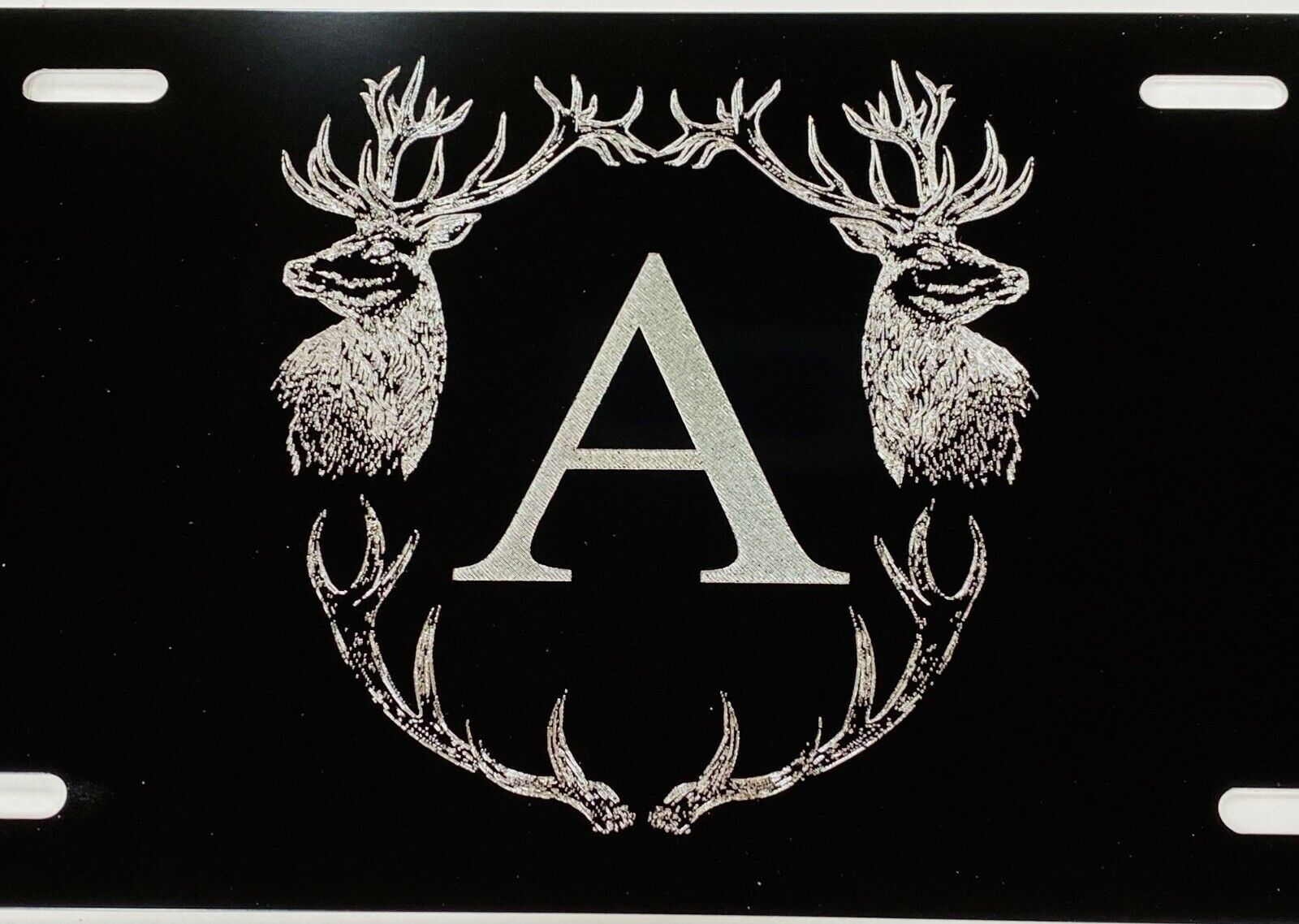 ENGRAVED Personalized Deer Antler Car Tag Diamond Etched Vanity License Plate