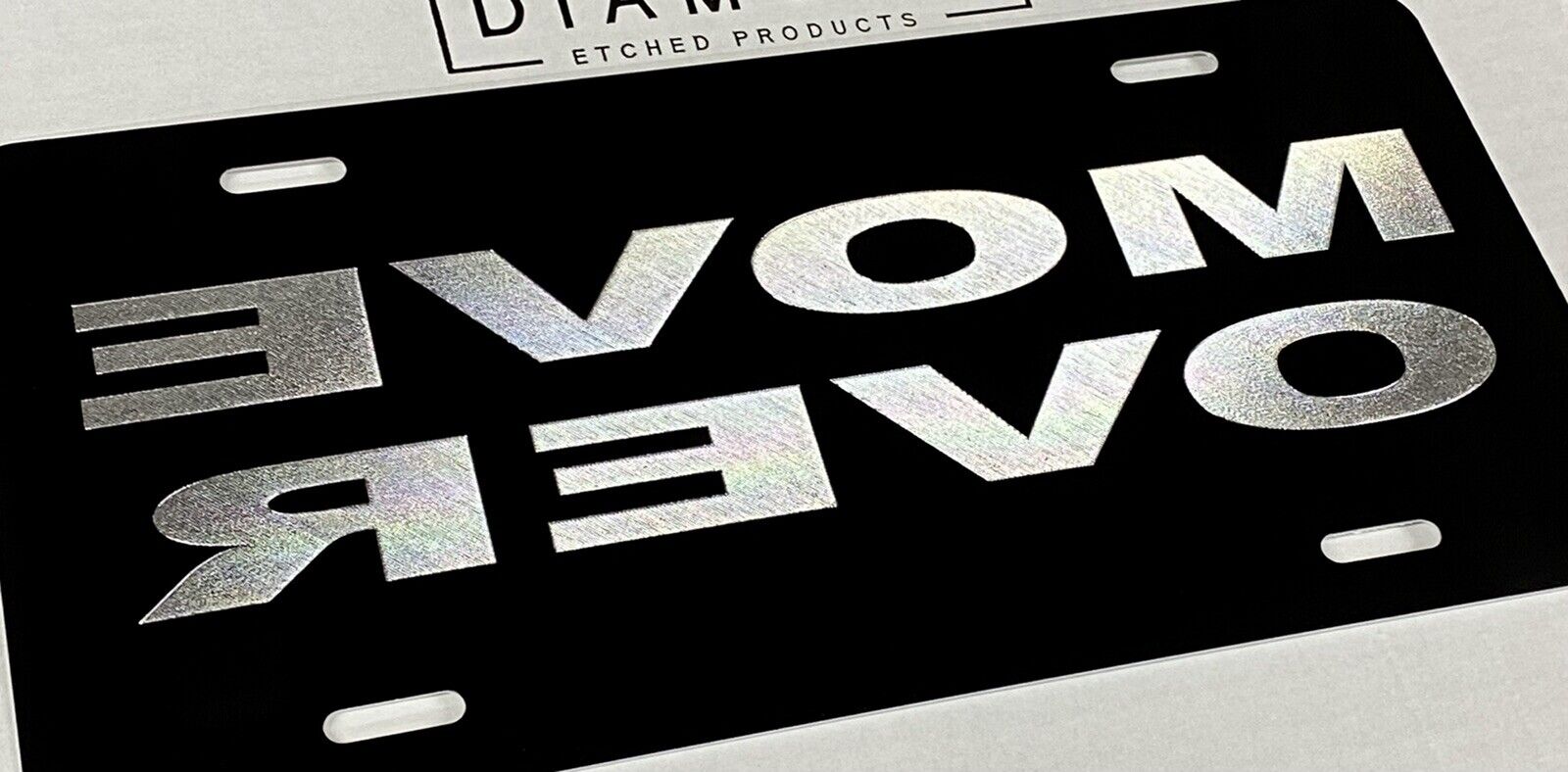 Engraved Reverse Move Over Diamond Etched Aluminum Black License Plate Car Tag