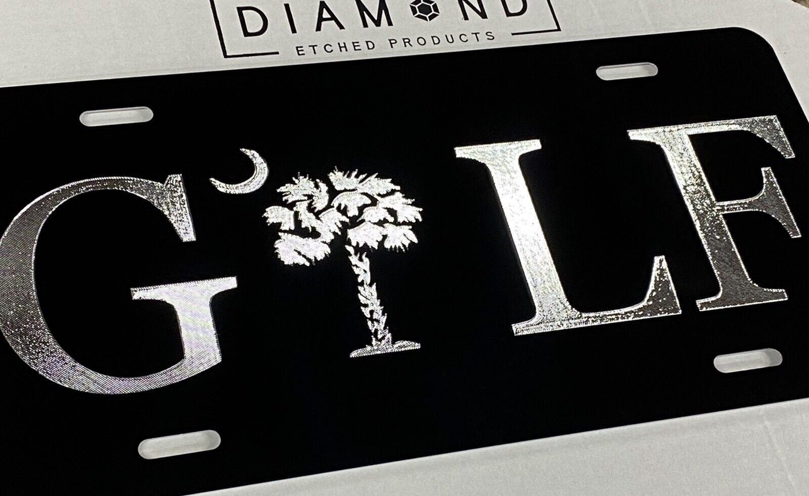 Engraved SC South Carolina Palmetto Golf Diamond Etched Car Tag License Plate
