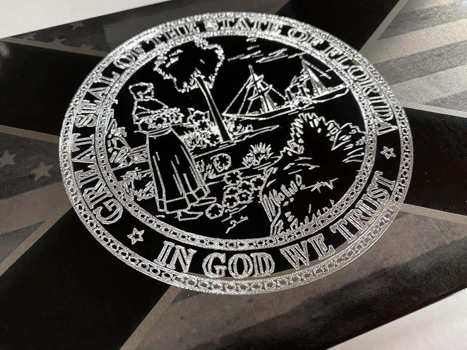 Florida State/US flag Combo Laser and Diamond Engraved License Plate Tag