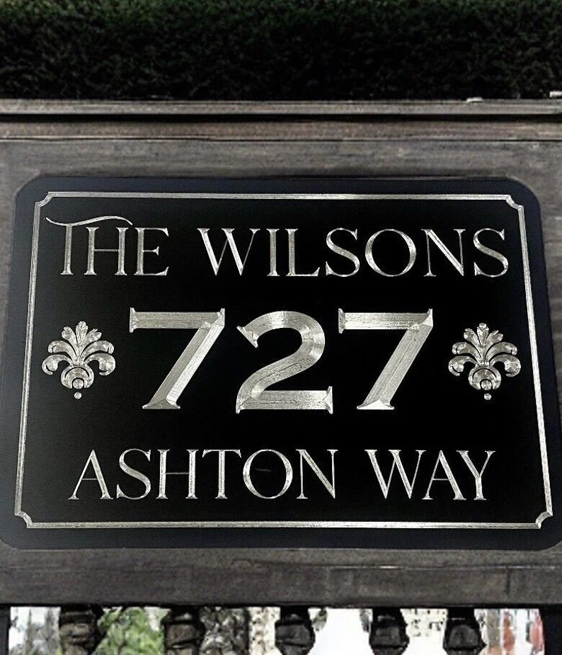 10" x 7" sign made from matte black .040 aluminum. Diamond etched to personalize to your liking, with options for holes in the top or all four corners for mounting.