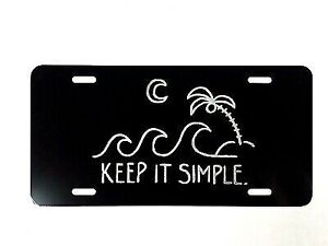 Keep it simple Logo 2 Car Tag Diamond Etched on Black Aluminum License Plate