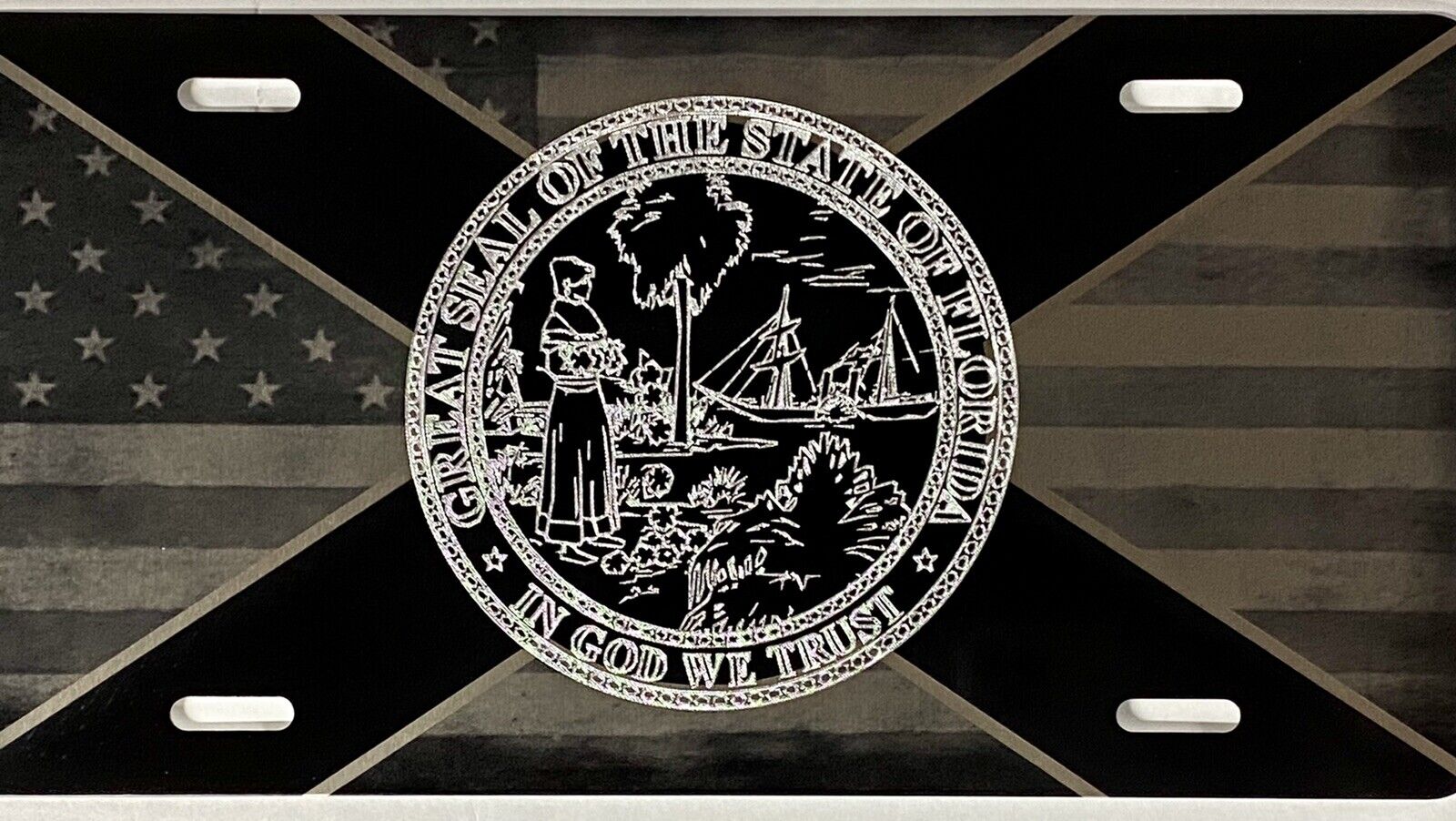 Laser US Flag & Diamond Etched Florida FL State Car Tag