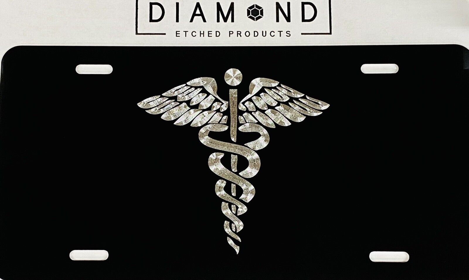 Medical Caduceus Car Tag Engraved Diamond Etched License Plate Nurse Doctor Gift