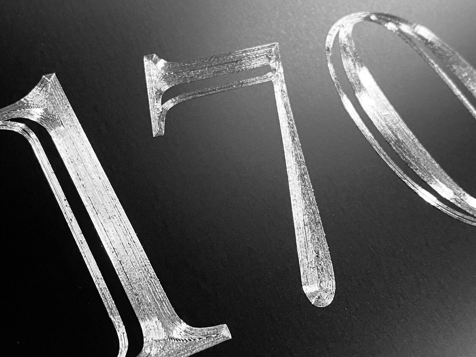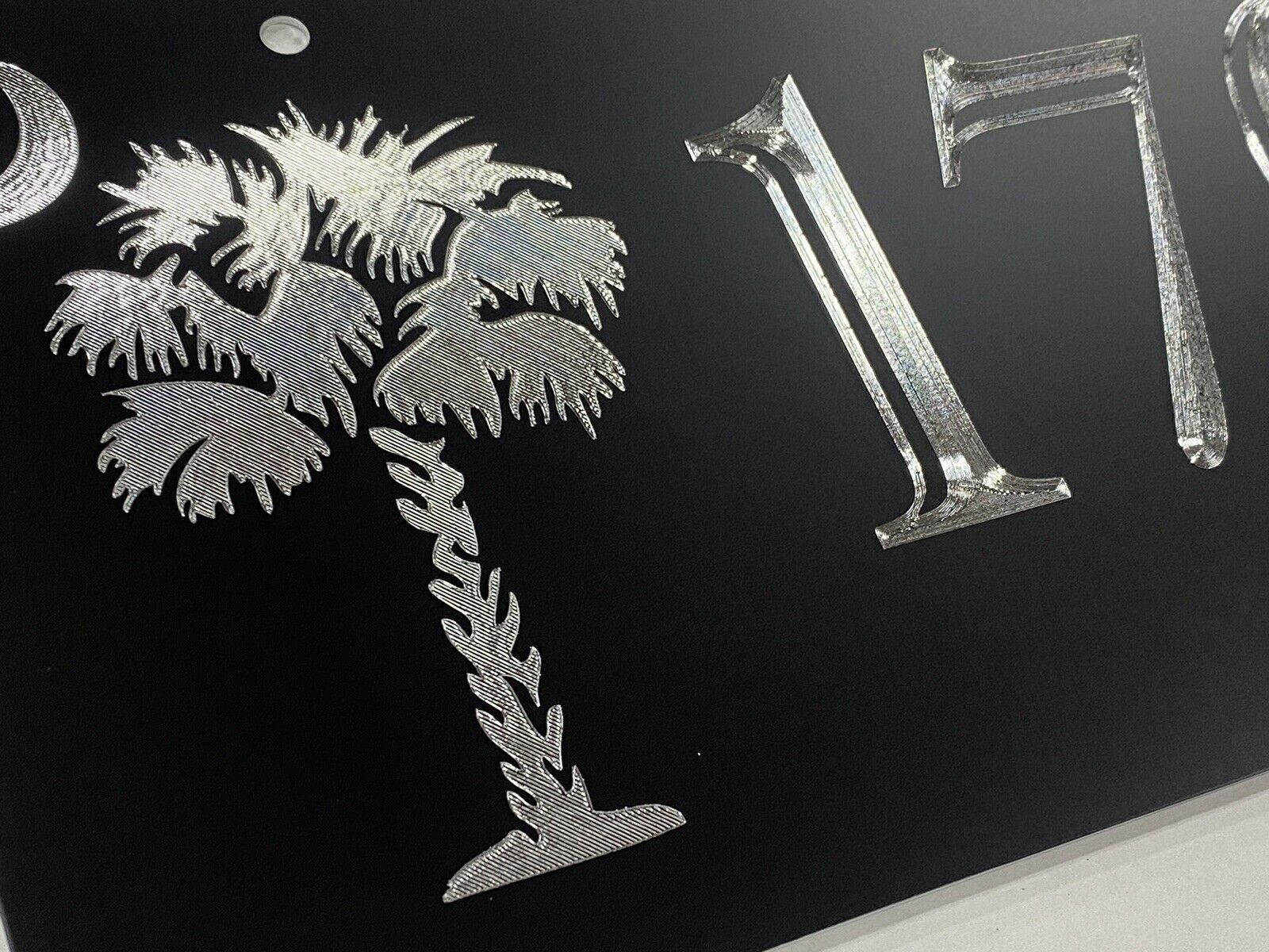 Our Diamond Etched aluminum gives a brilliant contrast to the matte black paint that cannot be fully appreciated until you see it in person. What we do for signage is what Rolls Royce does for the Automobile. Our products invoke Joy.