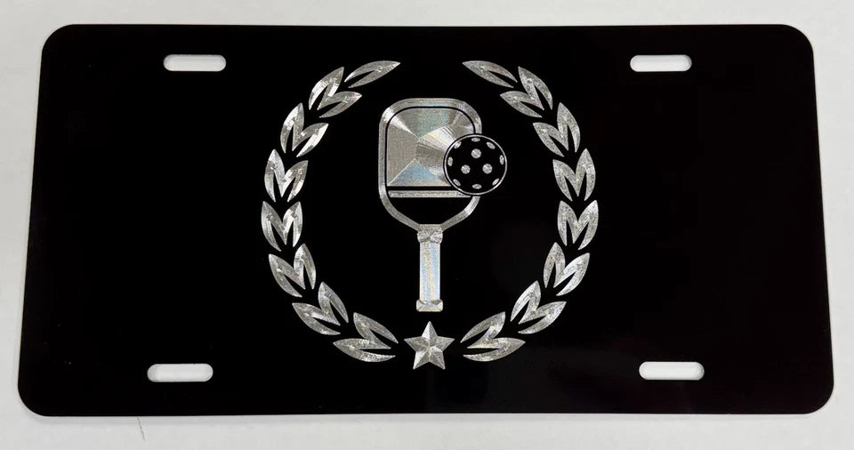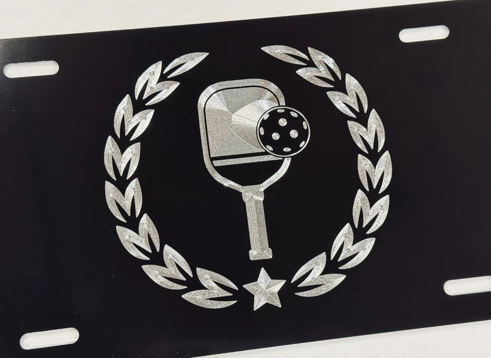 Pickleball Crest Diamond Etched Engraved Front Vanity Car Tag License Plate Gift