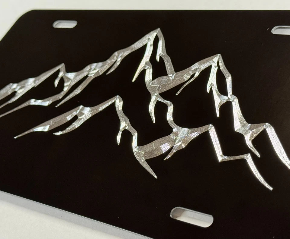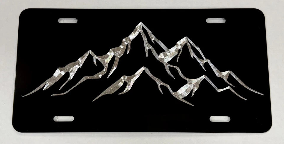 REFLECTIVE Engraved Mountains Car Tag Diamond Etched Black License Plate Gift