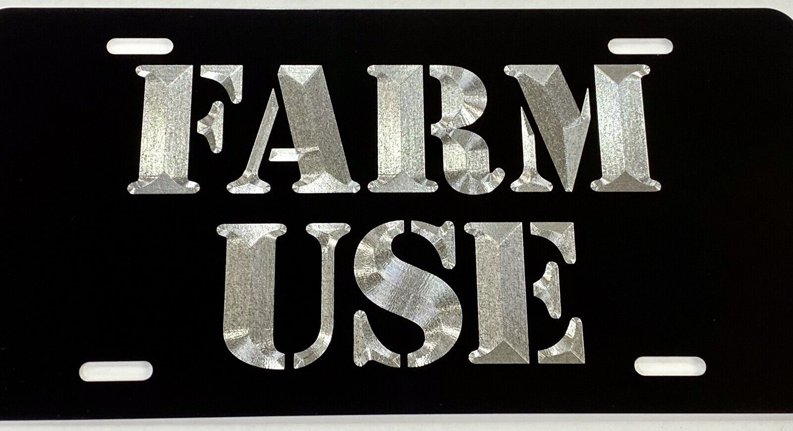 Silver ENGRAVED Farm Use Black Car Tag Diamond Etched Metal Front License Plate