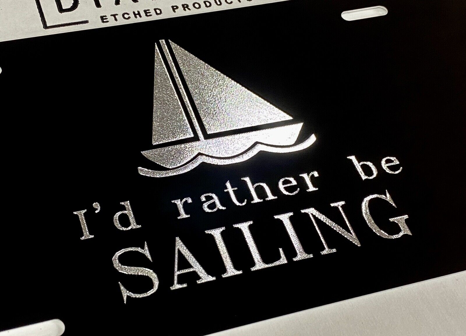 Silver Engraved I'd Rather Be Sailing Car Tag Diamond Etched Front License Plate
