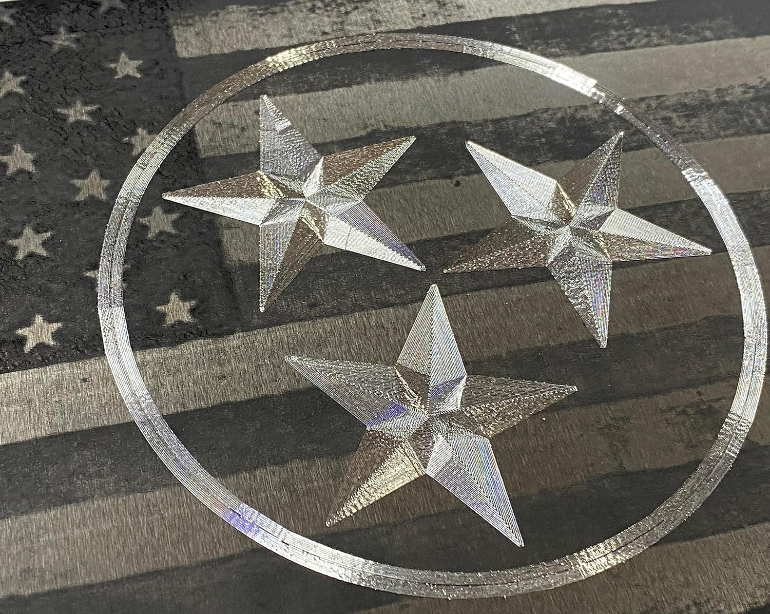 Tennessee State Flag Over US Flag Combo Laser and Diamond Etched License Plate