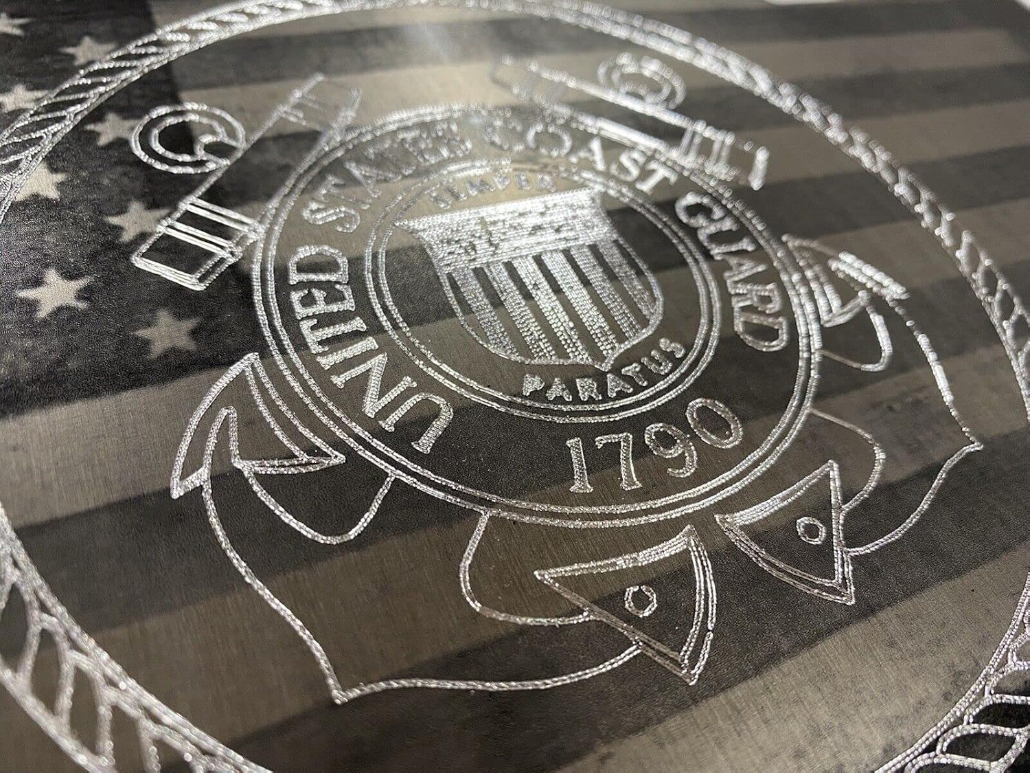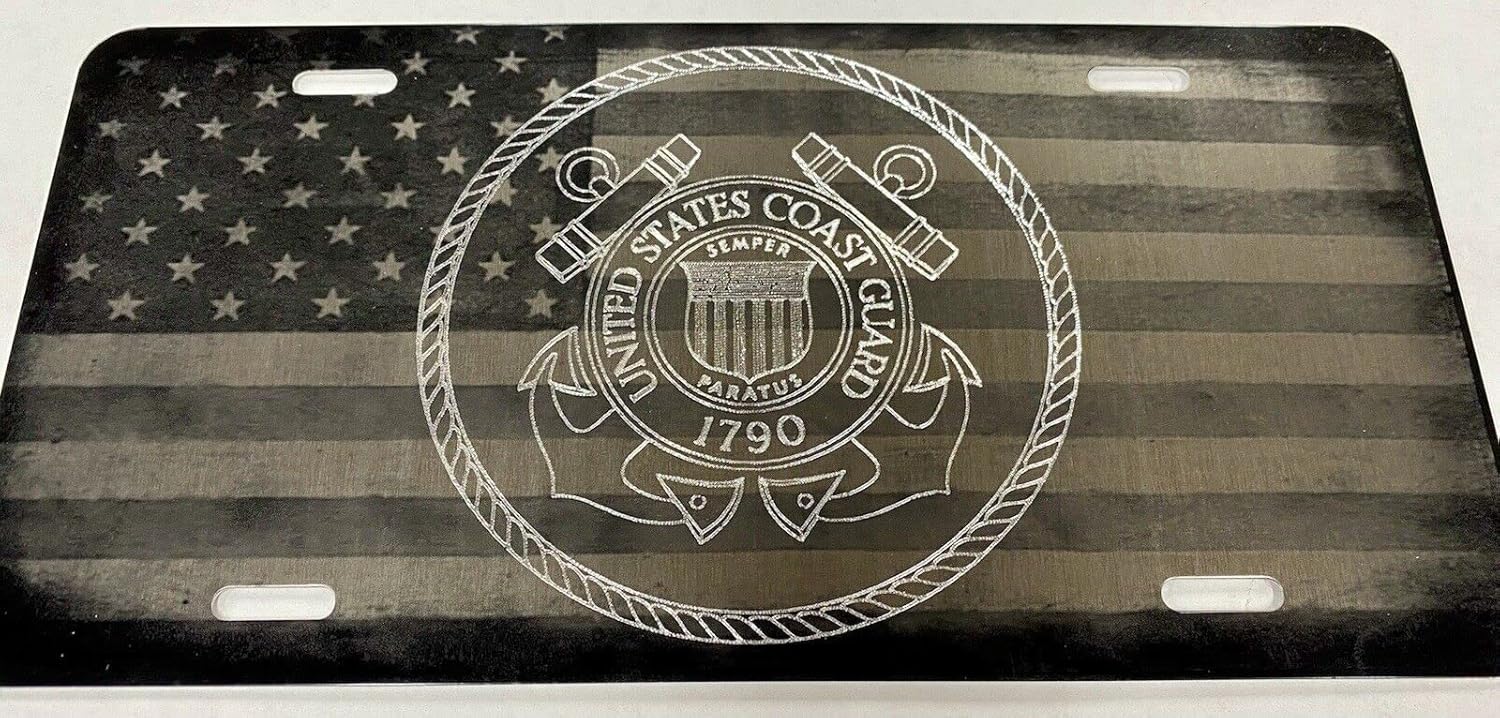 US Coast Guard/US Flag Laser and Diamond Engraved License Plate